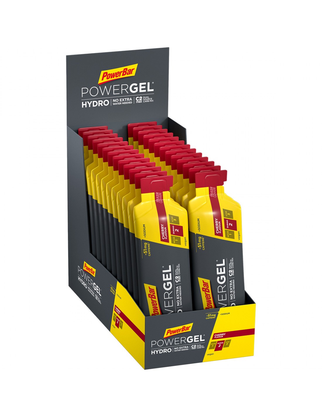 ¿Durante la última hora diste lo máximo de ti y ahora deseas un PowerGel® que no requiera beber después de tomarlo? En tal caso, deberías probar PowerGel® Hydro de PowerBar. Con C2MAX te ofrece una mezcla de hidratos de carbono que contiene una proporción científicamente desarrollada 2:1 de fuentes de glucosa y fructosa. Gracias a su consistencia líquida, el gel se ingiere con facilidad, por lo que no es preciso beber inmediatamente después, al contrario de lo que ocurre con otros geles. Ideal para corredores y deportistas que prefieren un gel más líquido.