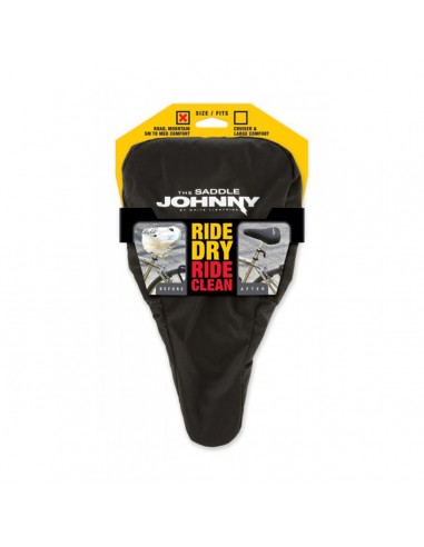 La funda Johnny cuenta con elástico incorporado para un ajuste ceñido y se adapta al sillín de carretera, montaña e híbrido. Es fácil de plegar y guardar, incluso cabe en las alforjas más pequeñas. Es perfecto para quienes viajan diariamente al trabajo y proporciona un viaje seco en todo momento.